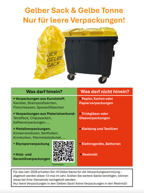 (Weitere Gelbe Säcke können kostenlos am Gemeindeamt abgeholt werden)