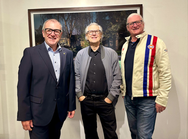 Zur Ausstellungseröffnung sind der Ternitzer Vizebürgermeister und Kulturstadtrat, KommR Peter Spicker, und Bürgermeister a. D. Rupert Dworak angereist, um den Künstler nach Ternitz einzuladen.